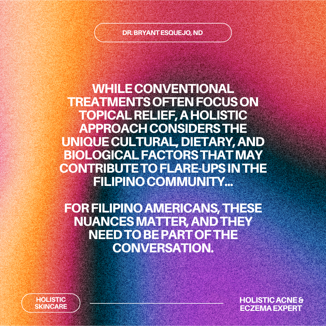 For many Filipino-Americans, the struggle with eczema goes beyond the surface. As mentioned so far, it's a reflection of deeper imbalances influenced by genetics, environment, diet, and stress. Because of their frustrations with repeat flares, many Filipino-Americans see me aiming to stop that cycle.